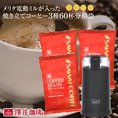 【澤井珈琲】5分で実感!挽きたて電動ミルが入った焼きたてコーヒー福袋77(珈琲/コーヒー豆/珈琲豆/ミル/メリタ/グラインダー) 【キャッシュレス5%還元】楽天