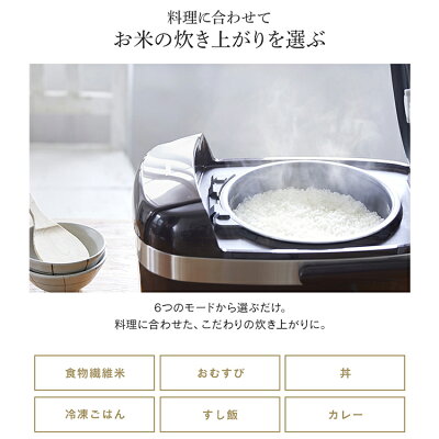 お米の炊き上がりを6つのモードから選ぶだけで料理に合わせた、こだわりの炊き上がりに。