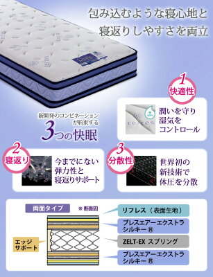 ブレスエアー入りマットレス 両面・エッジサポートタイプ クラウディア セミダブルサイズ mu-61400428送料無料 北欧 モダン 家具 インテリア ナチュラル テイスト 新生活 オススメ おしゃれ 後払い フレーム